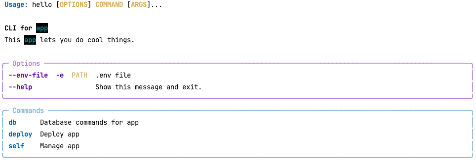 rich-click's default style is nice, and naturally it's what most of our users end up using. But we won't be offended if you want to change things up!